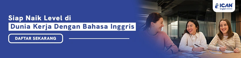 Kalau kamu masih malu atau gak percaya diri ketika berbicara dengan bahasa Inggris, kamu bisa belajar di kursus bahasa Inggris, ICAN English. Di sini, ada kelas Corporate English yang bisa bantu kamu makin mahir berbahasa Inggris, khususnya di lingkungan profesional.